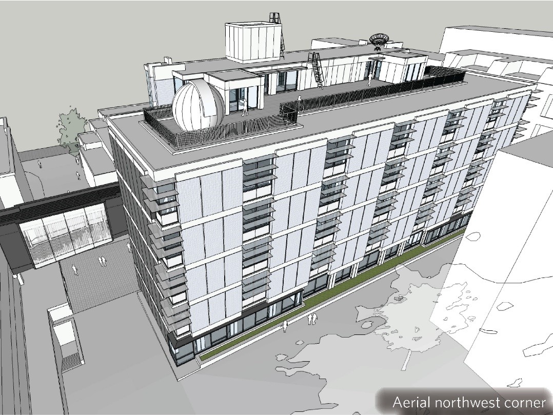 Artist's rendering showing the new observatory on the roof of the Hebb Building.